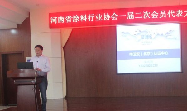 江苏双乐化工颜料有限公司销售主管徐海、中卫安认证中心河南办事处主任朱庆凯和上海艾枫机电设备有限公司销售工程师赵金森分别作《涂料中颜料的应用》、《中卫安认证工作情况》和《涂料生产自动化》相关报告。
