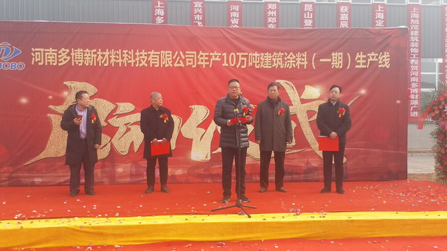 2019年1月12日上午,河南多博新材料科技有限公司年产10万吨建筑涂料(一期)生产线启动仪式在获嘉县产业集聚区隆重举行。