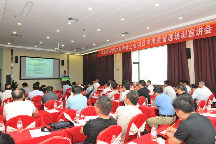 为了应对河南省涂料行业在国内经济下行压力持续加大情况下面临的困难和问题,使企业了解更多的政府慧企政策措施、资金补助奖励,促进企业优化管理结构,走健康发展道路。6月5日下午,河南省涂料行业协会在嵩皇体育会议中心召开了企业项目申报暨管理培训宣讲会。秘书长苏全军、常务副会长阎运锋等协会领导出席了宣讲会。