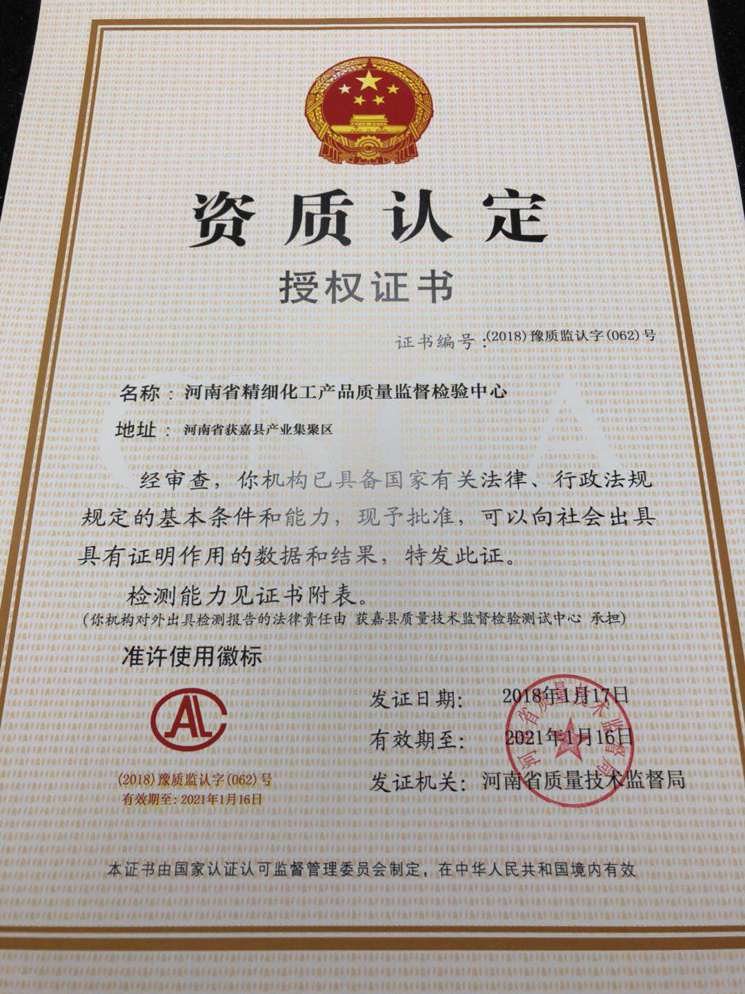 质检中心地址:获嘉县清华园学校斜对面